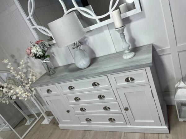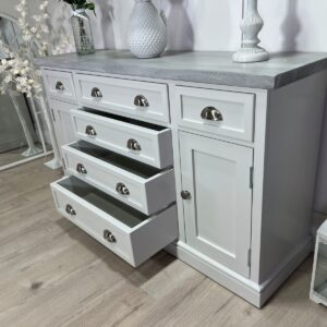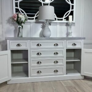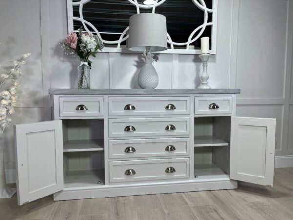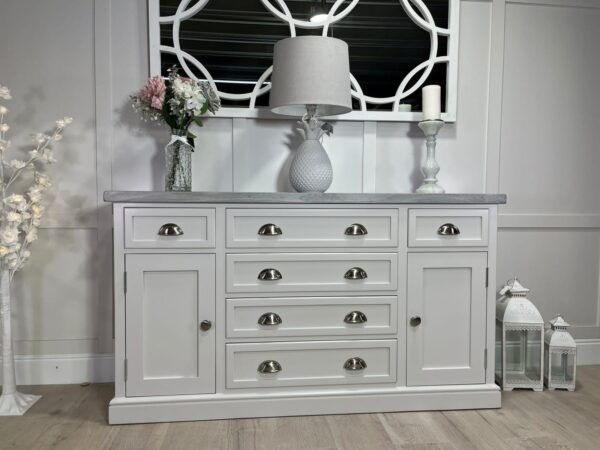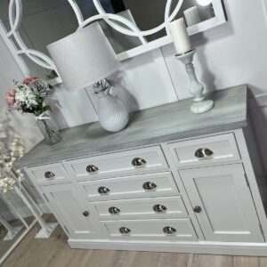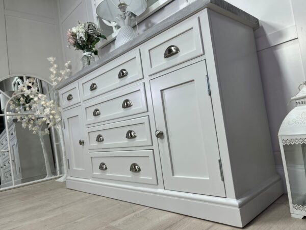 Introducing one of our traditionally handcrafted 150cm Classic Sideboards. We have chosen to finish this one in the gorgeous soft grey colour Ammonite which beautifully compliments our Grey wash worktop.