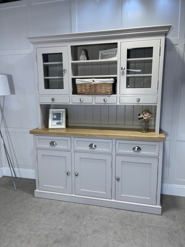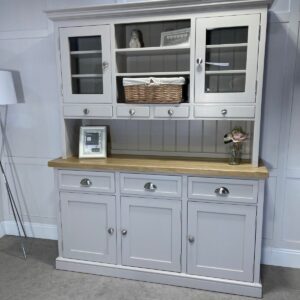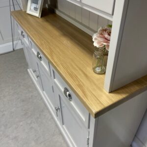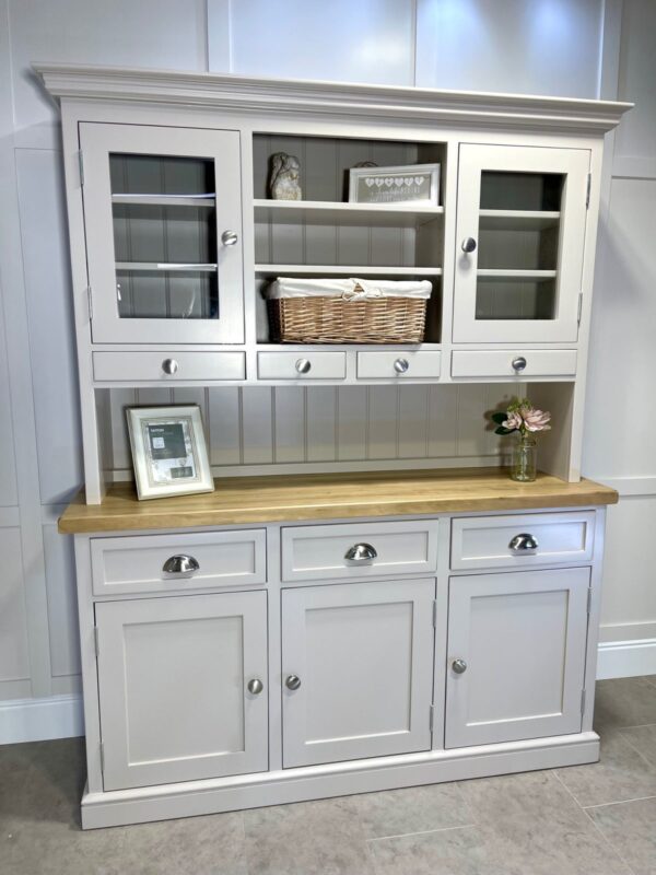 Introducing one of our traditionally handcrafted 150cm shaker dressers. Made from a beautiful knotless radiata pine these units are built to last a lifetime. We have chosen to finish this gorgeous example in the warm and contemporary colour Elephants breath which pairs beautifully with our Light worktop.
