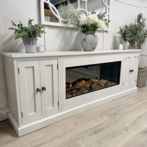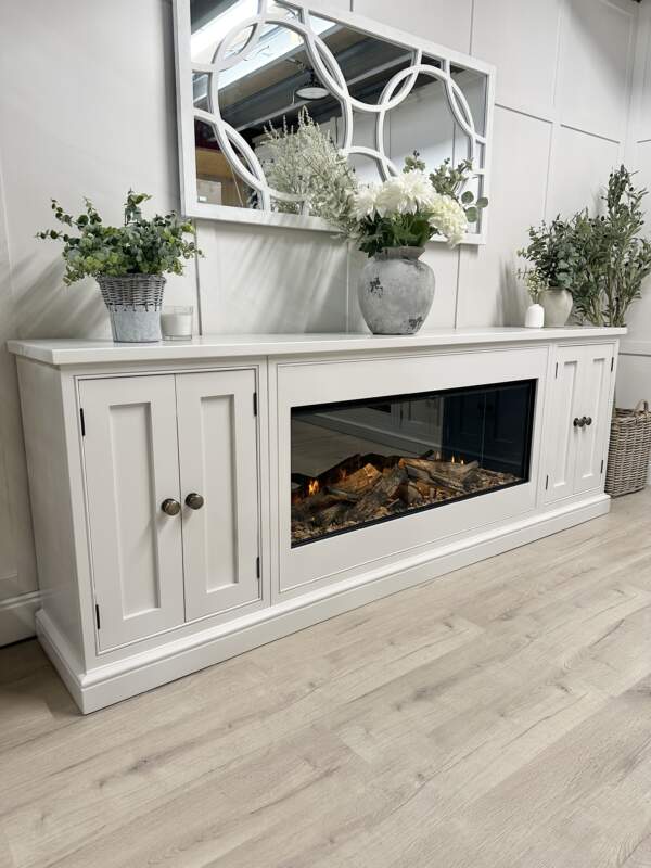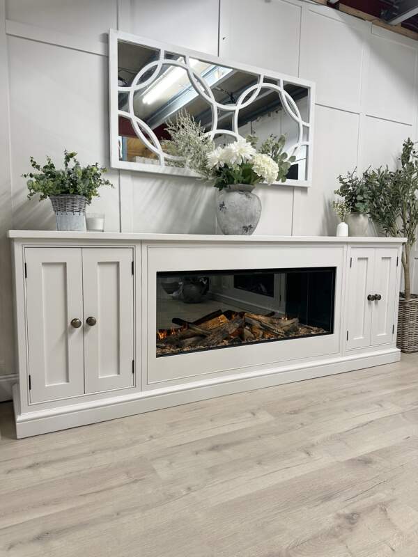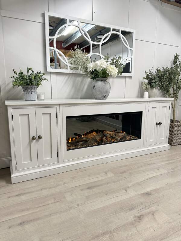 Introducing the epitome of luxury and innovation: Our NEW bespoke built sideboards with integrated British fires. It’s not just a statement piece – it’s an experience. Transform your home into a haven of modern elegance and undeniable allure. The gorgeous example shown was finished in the timeless neutral Farrow and Ball colour Skimming Stone.