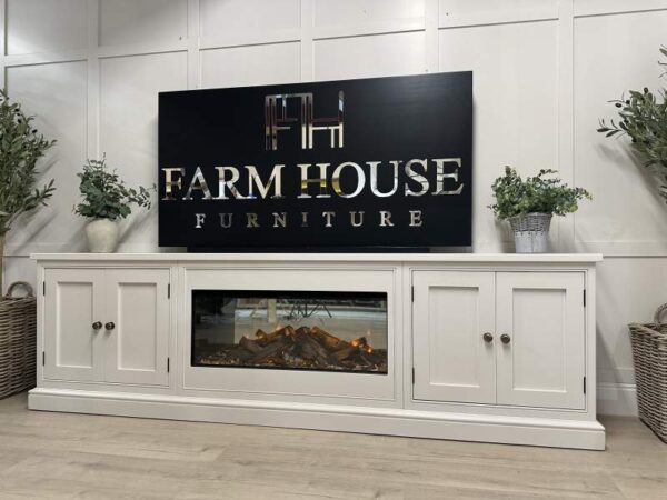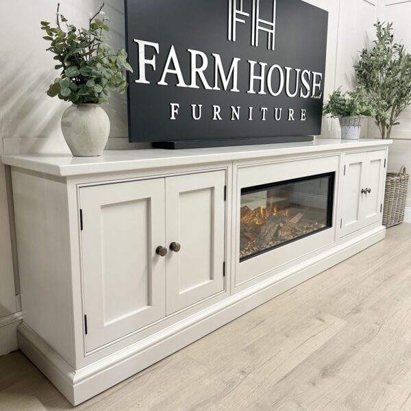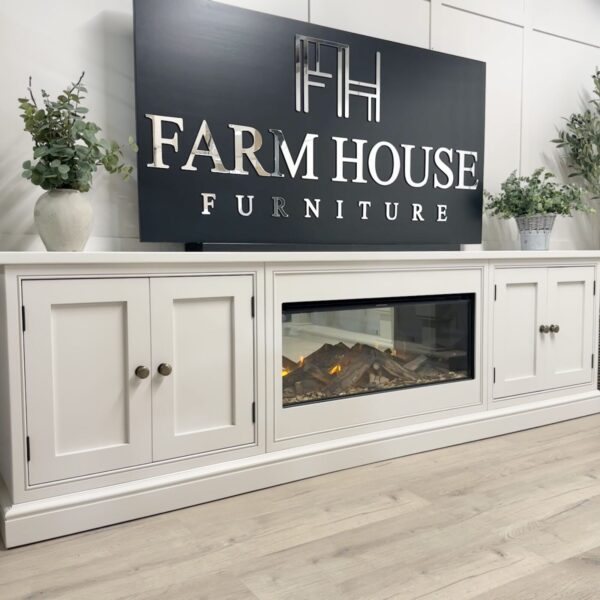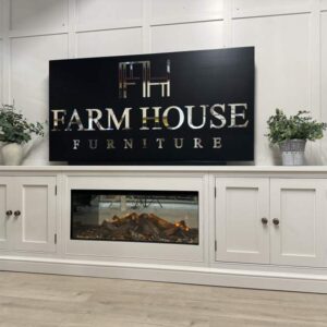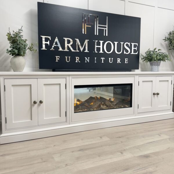 Introducing the epitome of luxury and innovation: Our NEW bespoke built TV stands with integrated British fires. It’s not just a statement piece – it’s an experience. Transform your home into a haven of modern elegance and undeniable allure. The gorgeous example shown was finished in the timeless neutral Farrow and Ball colour Skimming stone.