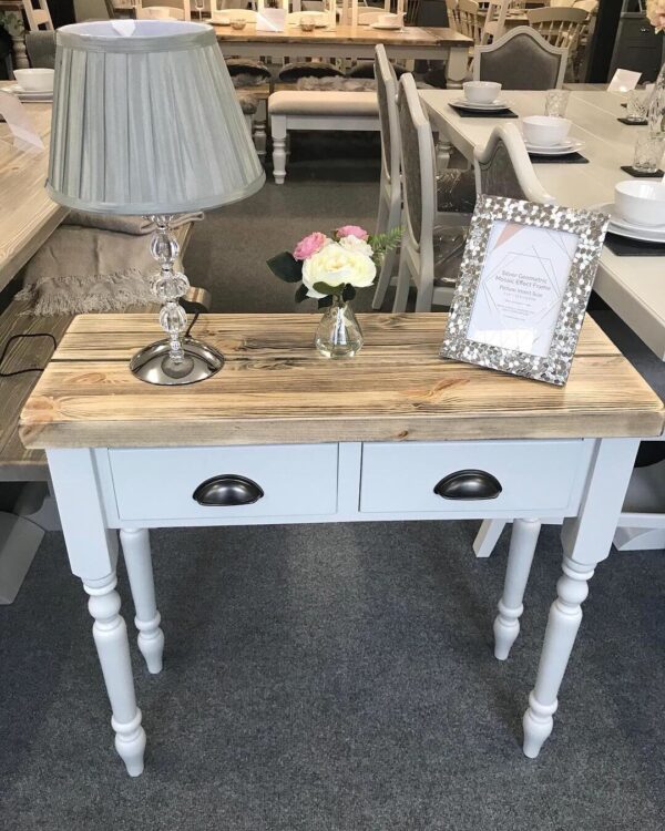 Beautifully crafted hall table made from completely solid pine. Finish shown on the main picture is in Ammonite with our Distressed stain top.