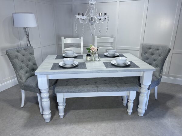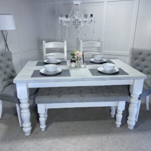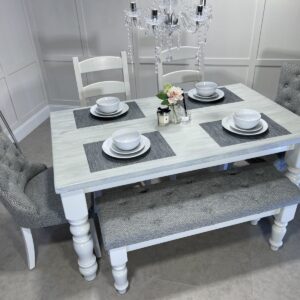 Be the first to review “5ft Chunky Farmhouse Table with Ladder Back & Fabric Chair/Bench Combo”
