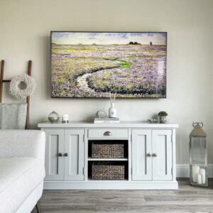 Introducing one of our traditionally handcrafted 5ft Shaker TV stands. Made from a beautiful radiata knot free pine these units are built to last a lifetime. Our gallery images showcase this gorgeous example in the calming and timeless F&B colour Ammonite.