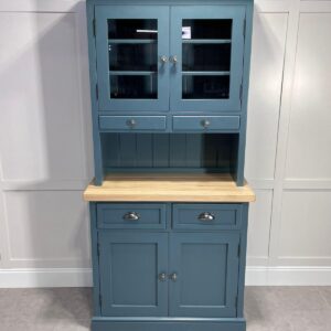 Introducing one of our traditionally handcrafted 90cm glazed shaker dressers. Made from a beautiful knotless radiata pine these units are built to last a lifetime. We have chosen to finish this gorgeous example in the striking and modern F&B colour Inchyra blue which pairs beautifully with our Light worktop.