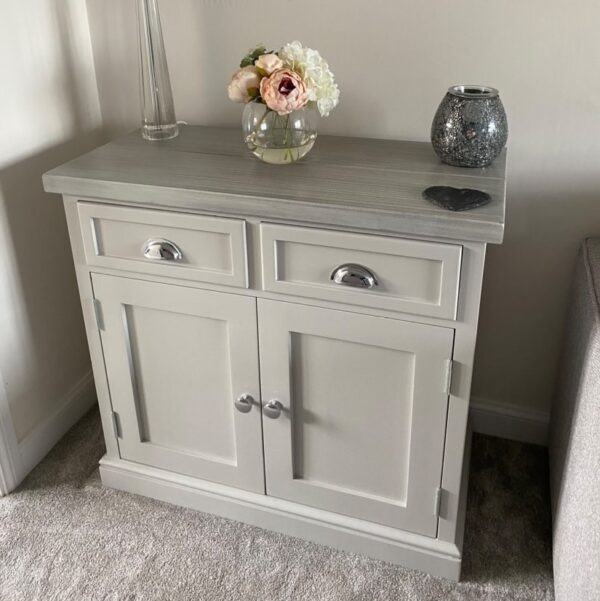 Introducing one of our traditionally handcrafted 90cm Shaker sideboards. Perfect for a neutral space the gorgeous example shown in the main image is finished in the timeless colour Ammonite which pairs beautifully with our Grey wash worktop. For a more striking appearance we have also included in the photo gallery a version finished in the characterful green colour French Grey which is beautifully complimented by our Distressed worktop.