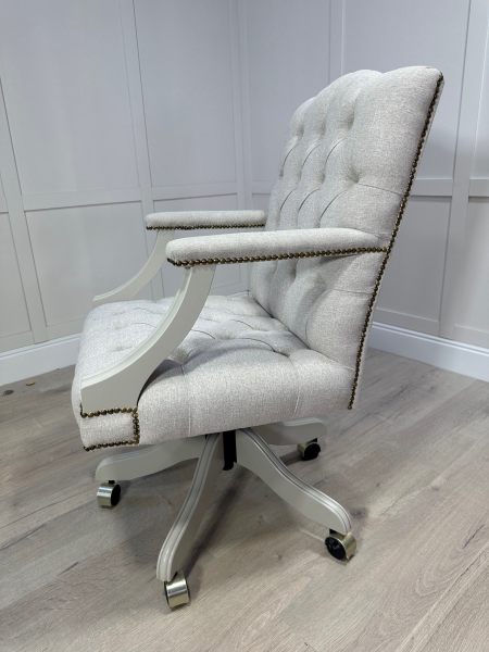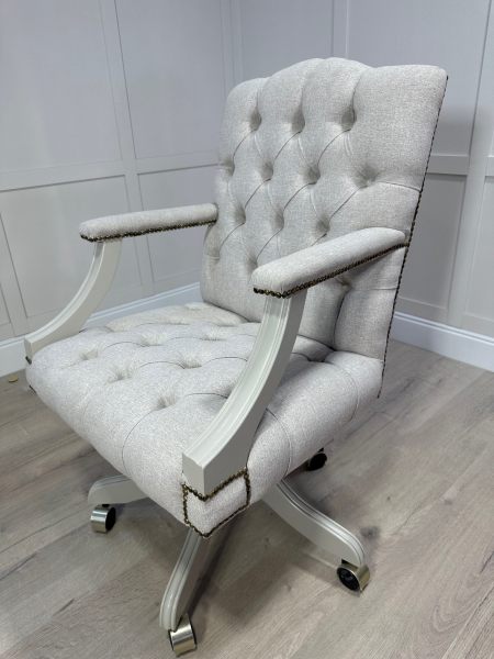 Introducing one of our luxurious and timeless beige executive office chairs. This gorgeous example was finished in the gentle greige colour Drop cloth which pairs beautifully with the beige covertex fabric Catania CAT2754 PARCHMENT.