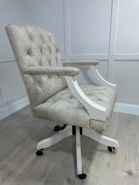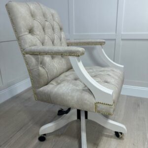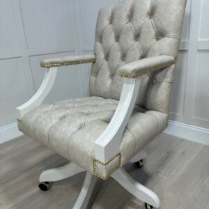 Introducing one of our luxurious and timeless leather executive office chairs. This gorgeous example was finished in the gentle beige colour Skimming stone which pairs beautifully with our carefully chosen etna cream leather.