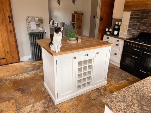 Introducing one of our traditionally handcrafted farmhouse kitchen islands. Made from a beautiful knotless radiata pine these units are built to last a lifetime. We have chosen to finish this gorgeous example in the cool yet timeless colour All white which pairs beautifully with our Light worktop.