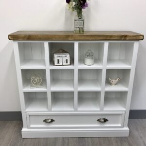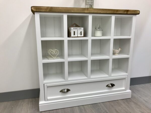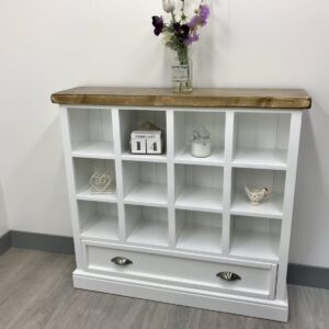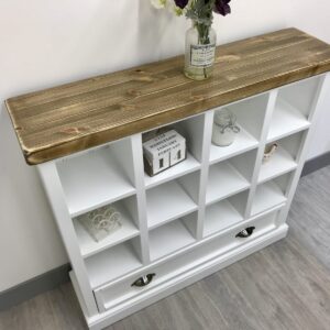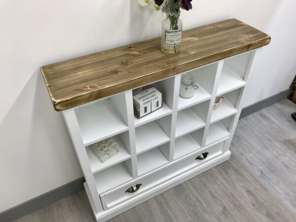 Beautifully handcrafted hallway bookcase made from completely solid pine. Finish shown on the main picture is in white with our dark distressed top.
