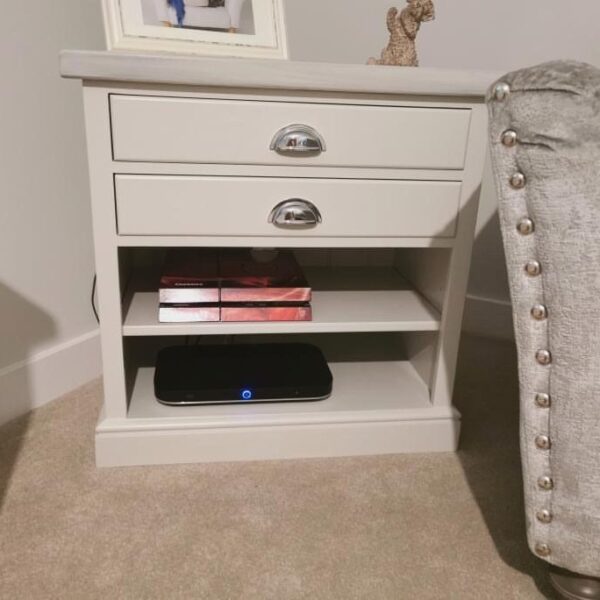 Beautifully handcrafted sofa side cabinet made from completely solid pine. Made from a beautiful knot free radiata pine these units are built to last a lifetime. We have chosen to finish this gorgeous example in the timeless colour Ammonite which pairs beautifully with our Grey wash worktop.